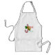 The apron is of very good quality. I used it while icing cookies. The dark colored icing washed off of the apron very well! The neck strap is sturdy and easy to resize on the adult size apron. The print was clear and well defined. I am glad I was able to personalize with name.