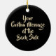 Lightweight, smooth, pure white ornament with nice sheen. Perfect size to be seen from across the room ... and to attract closer inspection! Price was great for ordering enough for the whole family! Clear, bold black design just as requested. Matches the order exactly. Just so nice!