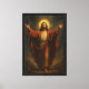 A powerful religious canvas artwork of Jesus Christ with open arms. Ideal for adding spiritual meaning to any space. Framed canvas, ready to hang with grace.