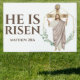 Perfect for a Catholic Church; an easter celebration or your home, this beautiful design featuring Jesus Christ, the son of God, framed by a geometric frame adorned with eucalyptus leaves, has his hands lifted up to praise the Lord. He is standing in front of the wooden cross he was nailed to and the crown of thorns is dangling on the top of the post. Templates in dark brown appear to his left in a bold font which read, he is risen, Matthew 28.6.