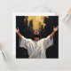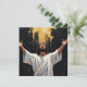 A blank card. A striking emotional ai depiction of Jesus Christ Our Savoir in black and gold. Jesus raising his arms to the Heavens with a black and gold impasto oil background.