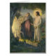 Vintage illustration religious Christianity image featuring Jesus Christ with a halo who has been resurrected. The young man is standing next to a beautiful woman by a cave. A holy light is shining from the tomb. Artist: ML Greer, c. 1923.
