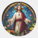 Jesus Christ Sacred Heart Faux Stained Glass Classic Round Sticker