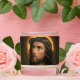 This vintage portrait of Jesus Christ wearing the Crown of Thorns captures a powerful symbol of his Passion and sacrifice in Christian tradition. A subtle heart-shaped rope at his chest represents the Sacred Heart, a reflection of divine love and compassion for humanity. Clothed in a red robe, Jesus exudes humility and grace, while a soft halo highlights his sanctity. Perfect for Lent, Holy Week, or Easter, this meaningful artwork invites reflection on Christ’s suffering, love, and sacrifice for humanity.