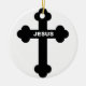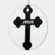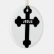 JESUS IN WHITE TEXT ON A BLACK CROSS