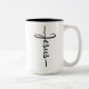Coffee mug is shown in black and white with a Jesus Cross print.