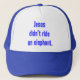 Reads, in blue letters, "Jesus didn't ride an elephant." Funny and humorous way to get your political viewpoint across with a laugh. Large lettering so your progressive, liberal, Democrat views can be shown. Send the Christian right a message that they do not own Jesus. Great for any election year!