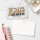 ►IMAGE: The name of “JESUS” in bold letters. ►COLORS: light brown aged, stained. ►TEXT: “JESUS, God With Us”. ►BACKGROUND: White / Marble. . . . ►Design appeals to men & women, all ages, Believers in Jesus Christ and the Christian Religion. (DESIGN by Paula Bragg)