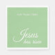Personalized these Easter napkins with your own text. You can add your family name, your church name, or a short text. "Jesus has risen" written in elegant white script will add faith inspiration to your Easter table. These simple modern script paper napkins will look great on your Easter table. The light green solid color is taken from the my photo of spring flowers. Add some cut flowers, some blossoms and some glassware for a chic, stylish botanical Easter table scape. All the contemporary typography is editable if you like to customize these Easter holiday napkins. Great for a faith filled family Easter, or church sunrise service, or Christian charity or mission dinner or banquet.