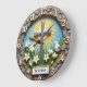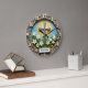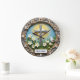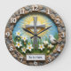 Celebrate the victory of the resurrection with this high-energy and inspiring spiritual wall clock. The central face features a high-definition graphic of a silver-toned cross set against a radiant yellow sunburst and a serene blue sky. Blooming white lilies, lush green grass, and a peaceful white bird complete the scene above the "he is risen" proclamation. While the artwork beautifully mimics the textured appearance of a heavy-stroke impasto painting and the outer rim looks like rustic, hand-laid garden stones, this is a lightweight and durable graphic timepiece rather than actual stone or sculpted plaster. The bold white numeric markers provide professional contrast against the textured border, ensuring the time is easy to read at a glance. This polished timepiece serves as a meaningful focal point for a kitchen or living area, making it an excellent self-gift for those celebrating the Easter season.