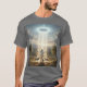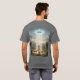 My 11 yo wore adult XL (5’7” 165#). The 8yo is small framed. She wore adult small and tied it in the back. Grandma wore adult large with long sleeve shirt underneath. Tall girl adult medium. Dark haired male adult large. Good quality dark Heather gray, Gildan brand shirt. -it was next up from basic choice and cost about $20 per shirt. Not too thick or thin. Washed and dried well, no major shrinkage. Not see-through. Can wear a bra under it fine. Screen print is just as shown and well done, front and back.