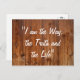 Jesus I am the Way Bible Verse John 14:6 Postcard . Jesus said, "I am the Way, the Truth and the Life" John 14:6 bible verse on a brown wood pattern background.