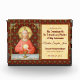 For Extraordinary Ministers of the Eucharist (EMHCs) + In this splendid image, Jesus sits at a table that is set for Passover and covered in a blue and white plaid cloth. He is clad in an eye-catching, soft red garment. It is Maundy or Holy Thursday and His Last Supper with His apostles. It is the moment at which He institutes the sacrament of Holy Communion or the Eucharist. + The figure of Jesus is isolated against a dark red background patterned with stylized artichokes in diamond shapes. The mood here is solemn. Lifting his eyes to heaven, Jesus raises his right hand in blessing. In his left, He holds up a large host, the Eucharistic bread, over the chalice filled with wine. In Latin--in a banderole beneath the scene--are the words of Consecration: “This is My Body… This is My Blood” (“Hoc est corpus meum… Hic est sanguis meus”). In remembrance of Him, at every Mass, the priest reenacts this sacred action turning ordinary bread and wine into Christ’s Body and Blood. + Image Credit (SAU 045): Antique devotional print of Jesus Instituting the Holy Eucharist, originally published in chromolithography by the Socièté de St. Augustin, Bruges, Belgium, late 19th century, from the designer’s private collection of religious ephemera.