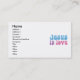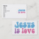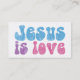 Blue, purple and pink vintage-style "Jesus is love" text design for Christians to spread the word about our Savior.