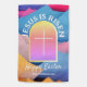 Create a traditional modern blend style for your Christian Easter lawn decor. This design features a decorative geometric colors in the background of digitalized cut paper inspired by stain glass with words forming around an arch and a cross in the middle. Jesus is risen is above a cross sitting in a colorful arch background. The words Happy Easter are below the cross with a template text to personalize with a name or family name. Makes a great outdoor decoration for a family or single person. Design by Ms_Jade. © Ms_Jade