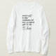 I love this shirt. I had written to the artist asking her if this picture was available on a shirt, and she wrote me back telling me where I could find the shirt. These shirts can be custom made to have a different saying. I loved this saying and went with it. The artist wrote me back later to tell me that she had seen my order go through. How's that for service? Pretty special. It's just as displayed. Perfect!