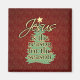 Jesus is the reason for the Christmas Season! Cute Christmas tree with a yellow star on top, and an inspirational Religious Christmas message on dark red maroon background.