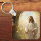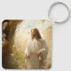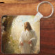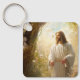 Keychain is shown with an art print of Jesus in the resurrection garden.