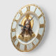 Bring a high-energy and majestic focal point of faith into your home with this stunning spiritual wall clock. The central face features a high-definition graphic of Jesus crowned in gold, set against a radiant sunburst and a clean white background. While the dial masterfully mimics the elegant veins of polished white marble and the ornate Roman numerals and outer filigree look like raised metallic gold, this is a lightweight and durable graphic timepiece rather than actual heavy stone or cast metal. The large gold-style numerals provide a professional and polished contrast, ensuring the time is easily readable at a glance. This timepiece serves as a sophisticated addition to a sanctuary, office, or living space, making it a powerful and meaningful self-gift for those who appreciate high-quality religious portraiture and classic regal design.