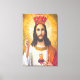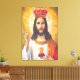 Jesus King Wrapped Canvas has Jesus with his arms up in the air and a red crown on and he has a red orange and white outfit on with a heart and cross on his chest.this is a vintage photo from the early 1900