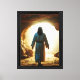 Symbolic image of Jesus Christ walking out of the tomb, illuminated by divine light. A powerful representation of resurrection, hope, and spiritual awakening — perfect for sacred wall decor.