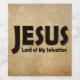 ►IMAGE: The name of “JESUS”. Simple, yet bold. ►COLORS: Black with brown border. ►TEXT: “JESUS, Lord of My Salvation”.. . . ►Design appeals to men & women, all ages, Believers in Jesus Christ and the Christian Religion. (DESIGN by Paula Bragg)