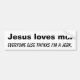 It's nice to know that Jesus loves you. Too bad everyone else thinks you're a jerk. And you can either work on it and try to be a better person, or you can just admit it and embrace the fact that you're a gigantic jerk and Jesus still loves you. Honestly, it's win-win.