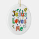 Really cute whimsical JESUS LOVES ME decorative text design. Image available on various gifts and products.