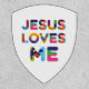 Jesus Loves Me colorful decorative text art. An elegant patch for you. Just buy this charm, enjoy, and be happy!