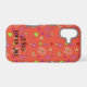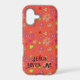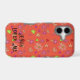“Jesus Loves Me" Peach iPhone Case. Hand drawn art of pink hearts and white flowers on a peach background. Personalize text and background color. Enjoy!