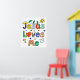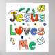 Cute and decorative whimsical text message which says the words JESUS LOVES ME. The background area is totally transparent so that you can easily customize and choose any color you like. Image available on various gifts and products.