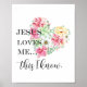 Jesus loves me this I know, bible verse painted in watercolor with a beautiful heart made of flowers by La tienda de Aryam