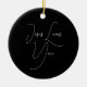 Lightweight, smooth, pure white ornament with nice sheen. Perfect size to be seen from across the room ... and to attract closer inspection! Price was great for ordering enough for the whole family! Clear, bold black design just as requested. Matches the order exactly. Just so nice!