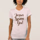 Inspirational Christian tees with brown vintage inspired typography and vintage heart scroll. Jesus loves you!
