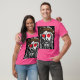 My 11 yo wore adult XL (5’7” 165#). The 8yo is small framed. She wore adult small and tied it in the back. Grandma wore adult large with long sleeve shirt underneath. Tall girl adult medium. Dark haired male adult large. Good quality dark Heather gray, Gildan brand shirt. -it was next up from basic choice and cost about $20 per shirt. Not too thick or thin. Washed and dried well, no major shrinkage. Not see-through. Can wear a bra under it fine. Screen print is just as shown and well done, front and back.