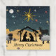 This gift tag features a beautiful arrangement of the biblical story of Jesus' birth including the Star above the stable. The night sky is a deep blue covered in stars contrasting with a golden ground giving a blue gold aesthetic. Optional 'Merry Christmas' text and a template have been provided to add your message name and/or other text on the reverse.