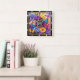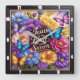 This vibrant square wall clock features the heartfelt declaration "Jesus is my Lord and Savior" in elegant script, surrounded by a lush bouquet of colorful flowers in shades of blue, purple, yellow, and pink. Delicate butterflies in matching hues flutter among the blooms, creating a beautiful and inspiring display of faith.