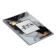 This notebook is shown with a Jesus is the way print and is shown in an ink abstract print in a multi colors black, gold and grey.