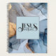 This notebook planner is shown with a Jesus is the way print and is shown in an ink abstract print in a multi colors blue and grey.