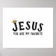 Modern Christian Quote Sign "Jesus You Are My Favorite" with a Gold Crown Sitting On Top of the Letter J.