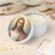 Light up your special occasion with this serene candle favor featuring a gentle image of Jesus, smiling peacefully with a warm golden glow behind his head. Perfect for baptisms, first communions, weddings, confirmations, and other religious gatherings, this favor brings calm, grace, and a meaningful keepsake for your guests. Beautifully detailed and thoughtfully designed, it radiates peace, blessing, and faith.