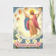 Jesus rising into a cloud with angels around Him and Easter lilies below. Pink and blue with a pink ribbon "Easter Blessings"