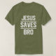 Show your Christian faith and witness as you go through your day. Text t shirt simply says Jesus Saves Bro. Many colors to choose from.