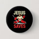 Jesus Saves Ice Hockey Goalie Player Christian Fun Button