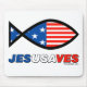 Jesus Saves - Christian slogan with the Christianity fish symbol designed with the United States flag.