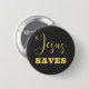 Trendy and beautiful, "Jesus saves", religious, christian, typography design with gold lettering 'Jesus' and yellow gold 'saves'.