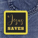 Trendy and beautiful, "Jesus saves", religious, christian, typography design with gold lettering 'Jesus' and yellow gold 'saves'.