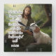 This touching clock face features Jesus Christ tenderly holding a lamb, seated in a serene natural setting. The profound quote from "Isaiah 53:6" reads: "We all, like sheep, have gone astray, each of us has turned to our own way; and the LORD has laid on him the iniquity of us all". Black numerals mark the hours, blending divine sacrifice with a daily reminder of redemption and grace.