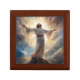 Trinket box is shown in golden oak wood with an art print of Jesus in his glory.