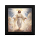 Trinket box is shown in black wood with an art print of Jesus in his glory.